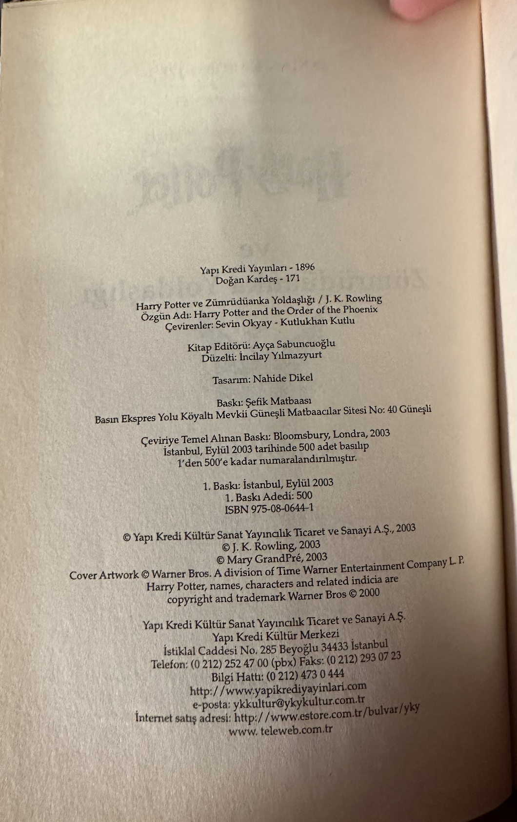 Stylistically, it is clear that this edition was intended to extend the four-book set, cf. SET-TUR-HP1~4-03859. The books were apparently individually numbered (copyright pages indicates this although the one exemplar we have is missing the numbered page for an unknown reason) and they are stylistically, identical.
